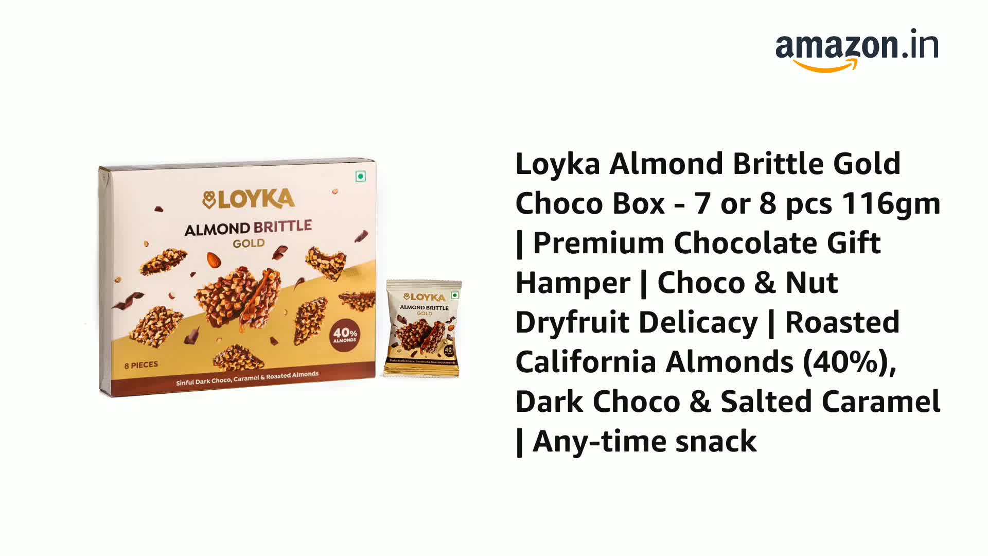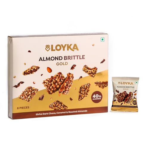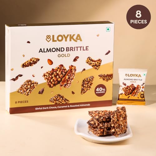 Loyka Almond Brittle Classic Choco Box - 7 pcs | Premium Chocolate Gift Hamper | Choco & Nut Dryfruit Delicacy | Roasted California Almonds (40%) Dark Choco & Salted Caramel | Any-time snack