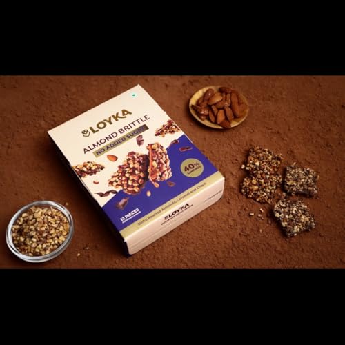 LOYKA Almond Brittle No Added Sugar Choco Box - 12 PcsDiet FriendlyNo Refined Sugar AddedHealthy Guilt-Free Morning/Evening SnackBetter-for-You SnackRoasted California Almonds (40%) - 204 gm