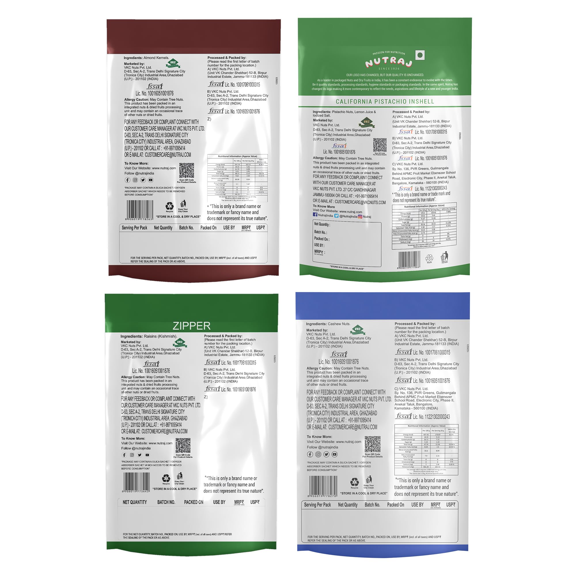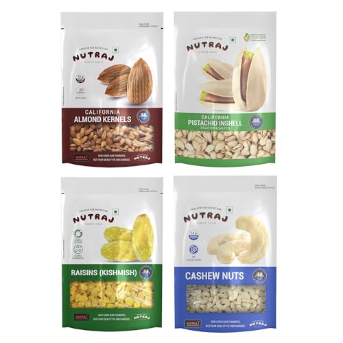 Revitalize your well-being with the Nutraj combo featuring 200g packs of almonds raisins pistachios and cashews. Hand-picked by experts these dry fruits are rich in dietary fiber plant-based protein healthy fats vitamins and minerals. Incorporate them into snacks like salads yogurts cereals or baked goods. Not only do they keep unwanted hunger pangs in check but they also offer a wholesome and delicious snacking option. With this combo you redefine healthiness effortlessly. Don't waitâgrab this nutritional powerhouse today. Shop Now!