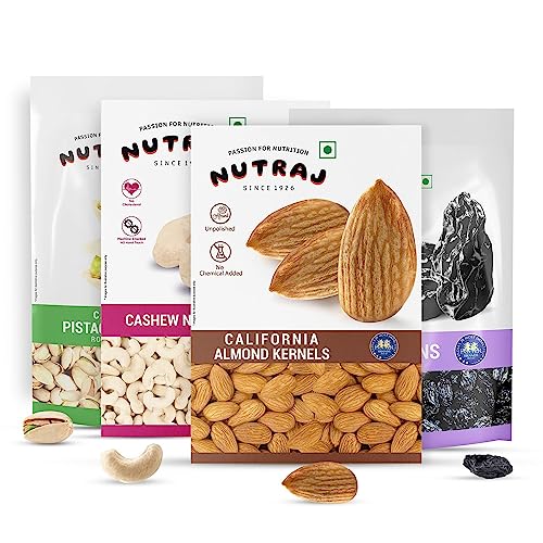 Enjoy a powerful combo that zests your health goals presenting Nutraj Best Dry Fruits Combo Pack that includes 200gm of almonds cashews pistachios and raisins. Made with the right blend of nutrition this combo is appropriate to fulfill your daily nutrition needs. Eat them raw/soaked in the morning or add them to your everyday recipes like salads oatmeal and desserts there are numerous ways to add this combo pack to your daily routine. Shop today!