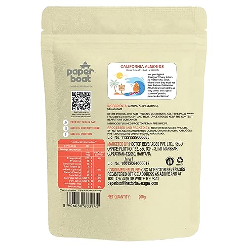 To eat badam daily is one of the best health habits you can imbibe. Dadima was right as per usual (but let's not tell her that!). Almonds are a great source of proteins minerals and vitamins and our California Almonds are as healthy as they come. These premium quality nuts are unroasted unprocessed unsalted and unputdownable! True to Paper Boat style these raw nuts are good for you in the truest sense because they are superior in quality and also Dadima approved.
