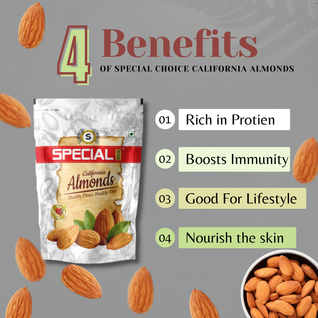 Almonds are a rich and delicious snack, and they can help you a healthy life. They provide the body with essential nutrients such as protein, fiber, vitamins. Special Choice Dry Fruits are an extremely fundamental piece of our eating routine as it contains an enormous number of supplements. Special Choice is providing you the Premium Dryfruits with Great Offers and Discounts.