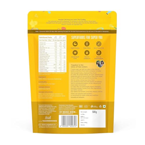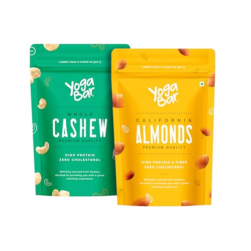 Yogabar California Almonds 500g Value Pack| 100% Premium California Dried Almonds |Badam Giri Nuts & Dry Fruits| Rich in Fiber vitamin E Magnesium Calcium & Boost Immunity| Healthy Badami Snacks Yogabar Cashews 500g| 100% Natural & Premium Whole Organic Cashew Nuts| King Size Crunchy Kaju Nuts| Premium Nuts & Dry Fruits| Rich in Fibre Vitamin E K B6 & Boosts Immunity| Healthy Snacks