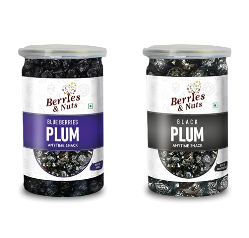 Berries And Nuts Premium Dried Blueberries Plum & Dried Black Plum Combo | Dried Blueberries Plum 250 Grams and Dried Black Plum 250 Grams | 500 Grams