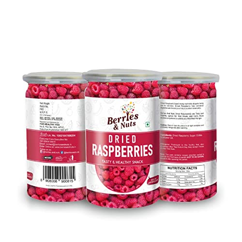 Berries and Nuts Premium Dried Rasphberries | Dehydrated Raspberries | 1 Bottles of 180 Grams