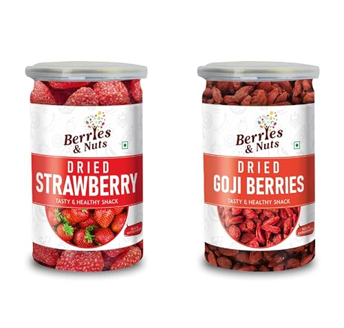 Berries And Nuts Premium Dried Strawberries 200 Grams & Gojiberries 160 Grams Combo | 360 Grams