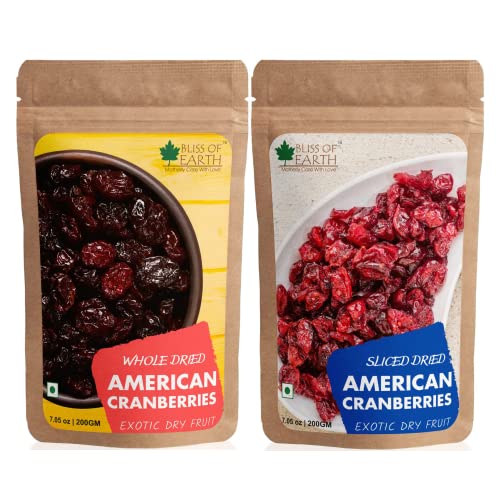Bliss of Earth 200gm Whole Dried American Cranberries+200gm Sliced Dried American Cranberries Exotic Dry Fruit Vitamins E, K & C Rich