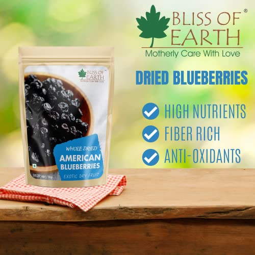 Bliss of Earth 2x200gm Whole Dried American Blueberries Exotic Dry Fruit King of Antioxidant (Pack of 2)