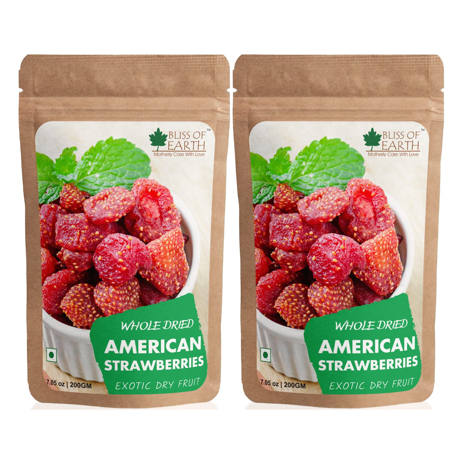 Bliss of Earth 2x200gm Whole Dried American Strawberries Exotic Dry Fruit Healthy and Tasty (Pack of 2)