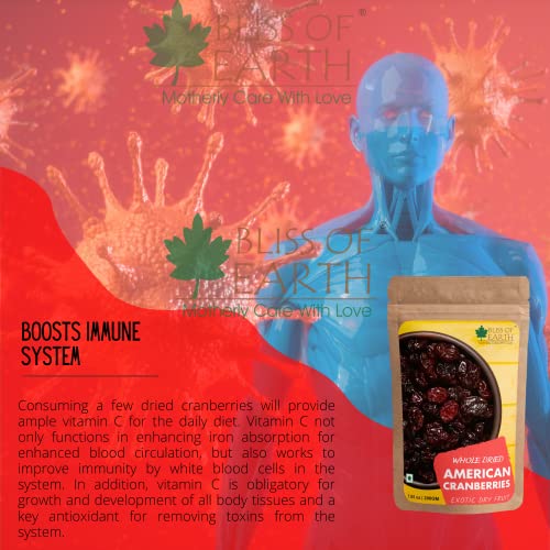 Bliss of Earth Dried Whole Cranberries are handpicked from the United States of America. These berries are natural and delightful dried berries that an excellent source of antioxidants Also rich in vitamin K&c and fiebre cranberries offer a daily dose of nutrients. Unlike many other dry fruits these berries are extremely versatile in their use. Dried cranberries are a culinary ingredient that will help you produce a variety of great dishes.