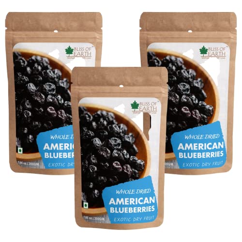 Bliss of Earth 3x200gm Whole Dried American Blueberries Exotic Dry Fruit King of Antioxidant (Pack of 3)