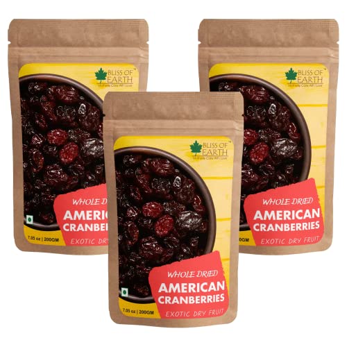 Bliss of Earth Dried Whole Cranberries are handpicked from the United States of America. These berries are natural and delightful dried berries that an excellent source of antioxidants Also rich in vitamin K&c and fiebre cranberries offer a daily dose of nutrients. Unlike many other dry fruits these berries are extremely versatile in their use. Dried cranberries are a culinary ingredient that will help you produce a variety of great dishes.
