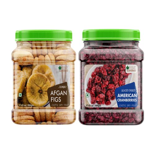 Bliss of Earth Dried Figs are in jumbo size and handpicked from afghanistan .These figs are low on calories and are immensely rich in soluble dietary fibre essential nutrients and a host of plant compounds that contribute to healing health benefits. figs are a powerhouse of antioxidant flavonoids which include carotenes lutein tannins chlorogenic acids and vitamins A E and K which assists in scavenging free radicals and prevents a host of chronic disease and reduces inflammation. Bliss of Earth Dried Sliced Cranberries are handpicked from the United States of America. These berries are natural and delightful dried berries that an excellent source of antioxidants Also rich in vitamin K&c and fiebre cranberries offer a daily dose of nutrients. Unlike many other dry fruits these berries are extremely versatile in their use. Dried cranberries are a culinary ingredient that will help you produce a variety of great dishes.