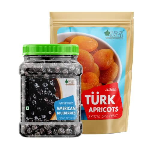Bliss of Earth 500gm Whole Dried American Blueberries+500gm Jumbo Turkish Apricots Exotic Dried Fruit Vacuum Seal For Extra Freshness