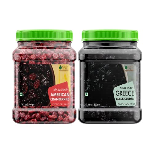 Bliss of Earth 500gm Whole Dried American Cranberries +500gm Whole Dried Greece Black Currant Exotic Dry Fruit Vitamins E, K & C Rich