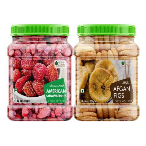 Bliss of Earth Dried Strawberries are handpicked from the United States of America. These berries are natural and delightful dried berries that are an excellent source of antioxidants. Also rich in vitamin A & C and fibre Strawberries offer anti-inflammatory properties helping in muscle recovery. Unlike many other dry fruits these berries are extremely versatile in their use. Dried strawberries are a culinary ingredient that will help you produce a variety of great dishes.Bliss of Earth Dried Figs are in jumbo size and handpicked from afghanistan .These figs are low on calories and are immensely rich in soluble dietary fibre essential nutrients and a host of plant compounds that contribute to healing health benefits. figs are a powerhouse of antioxidant flavonoids which include carotenes lutein tannins chlorogenic acids and vitamins A E and K which assists in scavenging free radicals and prevents a host of chronic disease and reduces inflammation