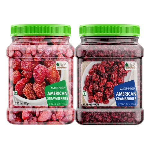Bliss of Earth Dried Strawberries are handpicked from the United States of America. These berries are natural and delightful dried berries that are an excellent source of antioxidants. Also rich in vitamin A & C and fibre Strawberries offer anti-inflammatory properties helping in muscle recovery. Unlike many other dry fruits these berries are extremely versatile in their use. Dried strawberries are a culinary ingredient that will help you produce a variety of great dishes.Bliss of Earth Dried Sliced Cranberries are handpicked from the United States of America. These berries are natural and delightful dried berries that an excellent source of antioxidants Also rich in vitamin K&c and fiebre cranberries offer a daily dose of nutrients. Unlike many other dry fruits these berries are extremely versatile in their use. Dried cranberries are a culinary ingredient that will help you produce a variety of great dishes.
