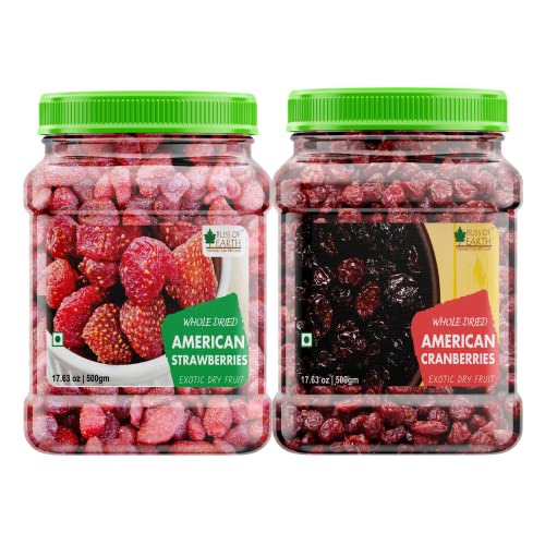 Bliss of Earth Dried Strawberries are handpicked from the United States of America. These berries are natural and delightful dried berries that are an excellent source of antioxidants. Also rich in vitamin A & C and fibre Strawberries offer anti-inflammatory properties helping in muscle recovery. Unlike many other dry fruits these berries are extremely versatile in their use. Dried strawberries are a culinary ingredient that will help you produce a variety of great dishes.Bliss of Earth Dried Whole Cranberries are handpicked from the United States of America. These berries are natural and delightful dried berries that an excellent source of antioxidants Also rich in vitamin K&c and fiebre cranberries offer a daily dose of nutrients. Unlike many other dry fruits these berries are extremely versatile in their use. Dried cranberries are a culinary ingredient that will help you produce a variety of great dishes.