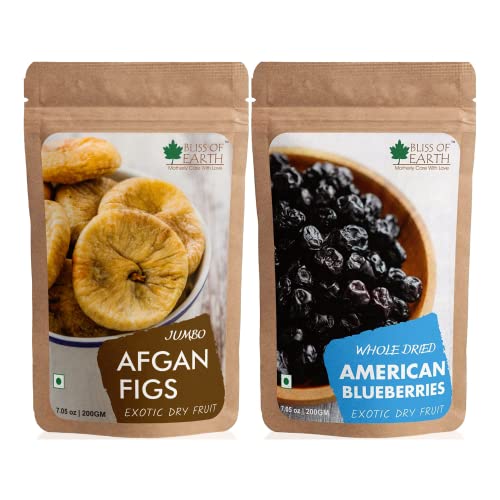 Bliss of Earth Afgan Figs 200gm + Dried American Blueberries 200gm Vacuum Packed Exotic Dry fruit Great for Health and Wellness