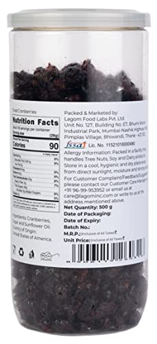 Lagom Gourmet Dried Cranberries 500g | Gluten Free | Vegan | Plant Based | Non GMO | Cranberry Dry Fruit