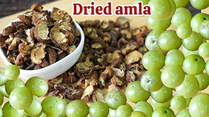 Amla Dry Pieces for eat original Herbal and Ayurvedic.Amla Dried: Amla also known as Indian gooseberry is dried to preserve its nutritional value and extend its shelf life. Drying amla removes moisture from the fruit concentrating its flavor and nutrients. Rich in vitamin C antioxidants and essential nutrients dried amla is valued for its health benefits. Often used in Ayurvedic medicine and traditional Indian cuisine for its medicinal properties and tangy taste. Dried amla can be consumed directly as a snack or added to various dishes including chutneys pickles and herbal teas. It is believed to support immune function improve digestion promote hair and skin health and enhance overall well-being. The convenience of dried amla allows for easy incorporation into daily diet and wellness routines. When stored properly in a cool dry place dried amla can maintain its quality and potency for an extended period.