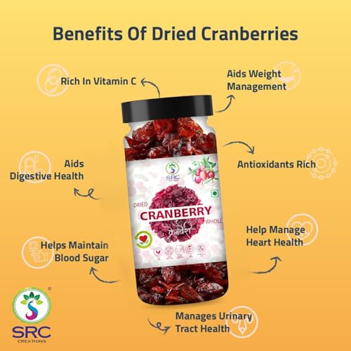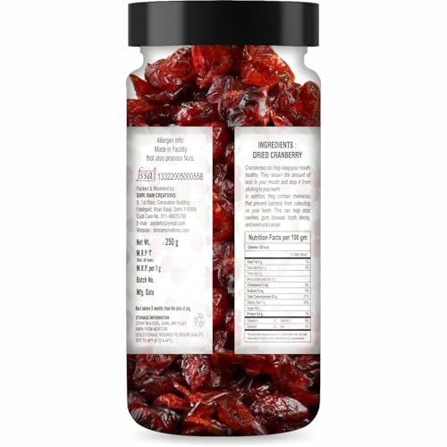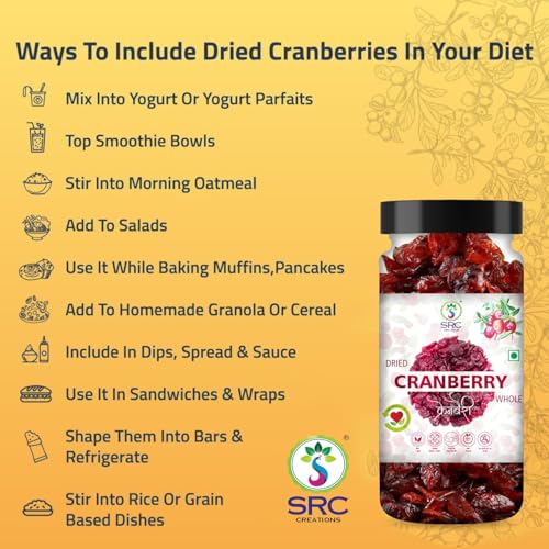 The natural goodness of premium Dried Cranberries carefully selected and sweetened to perfection. These chewy antioxidant-rich cranberries are not only a delicious snack but also a versatile ingredient for a variety of recipes. Whether you're baking your favorite treats adding a tangy twist to salads or blending them into smoothies these dried cranberries enhance every dish. Packed with essential nutrients and antioxidants they are a healthy snack choice that supports your active lifestyle. Conveniently jar-packed for freshness and ease of use they are perfect for gifting on special occasions or treating yourself to a wholesome delight.