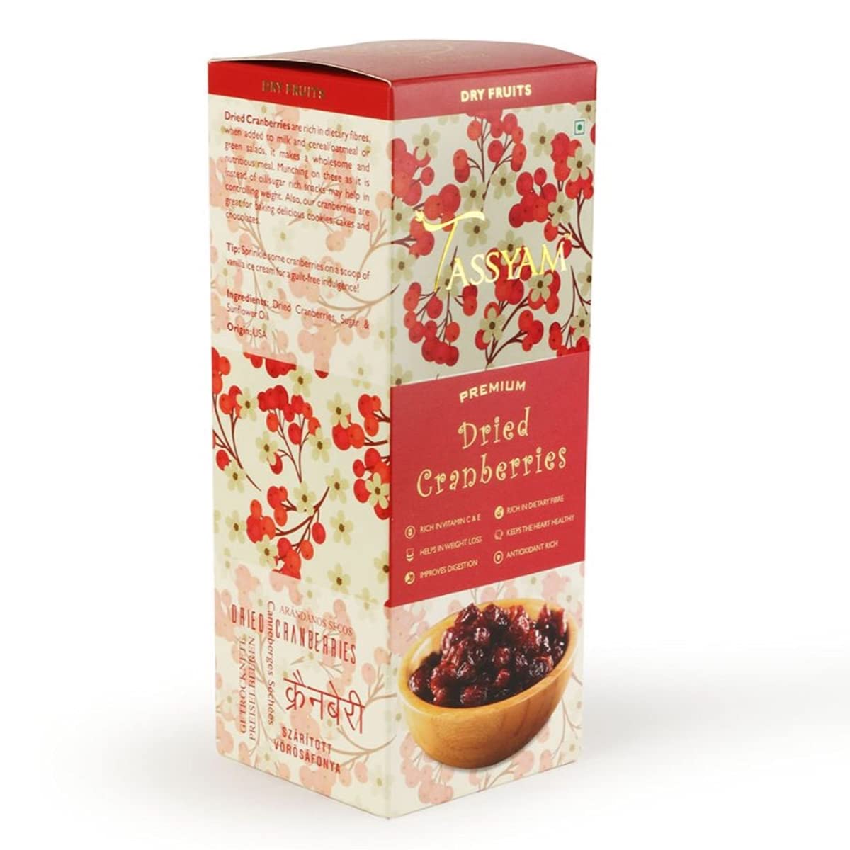 Tassyam Premium Dried Cranberries 250g | Healthy Dry Fruits Luxury Box