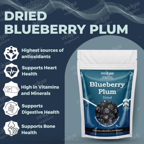Blueberry Plum from Vedyaz Organics is a gourmet treat that combines the luscious taste of ripe blueberries with the succulent sweetness of plums. Each piece of Blueberry Plum is carefully selected dried to perfection and packed with the essence of these two beloved fruits. The result is a deliciously sweet and slightly tangy snack that is as nutritious as it is flavorful.Perfect for a wide range of uses Blueberry Plum can be enjoyed on its own as a convenient and satisfying snack. It also makes a great addition to cereals yogurt or salads and can be used to enhance baked goods like muffins and granola bars. Whether you’re looking for a quick snack or an ingredient to elevate your recipes Blueberry Plum from Vedyaz Organics delivers both taste and versatility.Experience the perfect harmony of taste and health with Vedyaz Organics Blueberry Plum. Enjoy the delectable fusion of blueberry and plum and savor a snack that’s as nutritious as it is delicious.