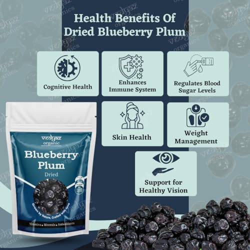 Blueberry Plum from Vedyaz Organics is a gourmet treat that combines the luscious taste of ripe blueberries with the succulent sweetness of plums. Each piece of Blueberry Plum is carefully selected dried to perfection and packed with the essence of these two beloved fruits. The result is a deliciously sweet and slightly tangy snack that is as nutritious as it is flavorful.Perfect for a wide range of uses Blueberry Plum can be enjoyed on its own as a convenient and satisfying snack. It also makes a great addition to cereals yogurt or salads and can be used to enhance baked goods like muffins and granola bars. Whether you’re looking for a quick snack or an ingredient to elevate your recipes Blueberry Plum from Vedyaz Organics delivers both taste and versatility.Experience the perfect harmony of taste and health with Vedyaz Organics Blueberry Plum. Enjoy the delectable fusion of blueberry and plum and savor a snack that’s as nutritious as it is delicious.
