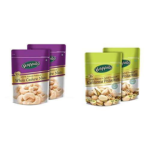 Happilo 100% Natural Premium Whole Cashews 200g (Pack of 2)Happily has travelled the world to get the finest gourmet dry fruits dried fruits nuts berries and dates 100 percent natural and authentic. Indulge into the gourmet and grocery world of Happily with awesome natural nuts and dry fruits along with the unique dry fruit mixes fusions and flavoured dry fruits healthy seeds and dried berries specially crafted for your taste and health. Happily dry fruit gift boxes and festive dry fruits and nuts gift pack brings health happiness and love to gift to your colleagues friends and family. We bring you the taste and health together in single pack in the finest of packing packed in an art of the state facility certified by all majors like fssai iso. Every Happily pack is a perfect dry fruits gift for every festive occasion.Happilo Premium Californian Roasted and Salted Pistachios 200g (Pack of 2)Happily has travelled the world to get the finest gourmet dry fruits dried fruits nuts berries and dates 100 percent natural and authentic. Indulge into the gourmet and grocery world of Happily with awesome natural nuts and dry fruits along with the unique dry fruit mixes fusions and flavoured dry fruits healthy seeds and dried berries specially crafted for your taste and health. Happily dry fruit gift boxes and festive dry fruits and nuts gift pack brings health happiness and love to gift to your colleagues friends and family. We bring you the taste and health together in single pack in the finest of packing packed in an art of the state facility certified by all majors like fssai iso. Every Happily pack is a perfect dry fruits gift for every festive occasion.