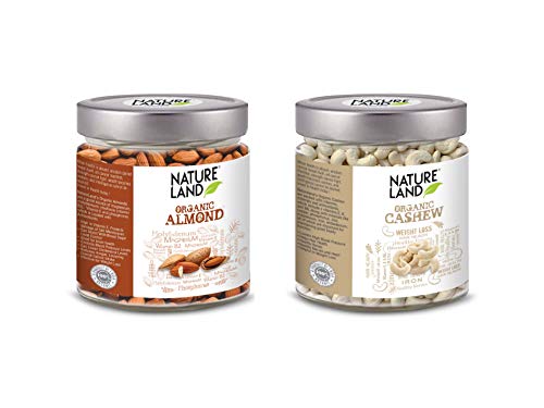 Natureland"s organic almonds. The health benefits of almonds include lower blood sugar levels reduced blood pressure and lower cholesterol levels. They can also reduce hunger and promote weight loss. It also helps in maintenance of healthy hair skin care (psoriasis) and dental care since it is a rich source of vitamin e calcium phosphorous iron and magnesium. It also contains zinc selenium copper and niacin. Natureland's organic almonds trace back their origin from the hills of Jammu & Kashmir and valley of Himalayan Pradesh these almonds sourced from the organic grown selected trees after three years of planting the trees and green almonds are de shelled to give you the best quality of non pasteurized shelled almonds. Best organic grocery & gourmet.