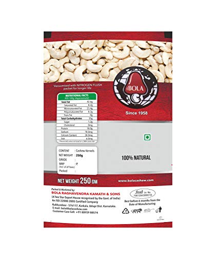 Bola Cashew Nuts with skin NW (Natural Wholes with Skin-Chilkwale Kaju) 250 Grams