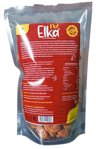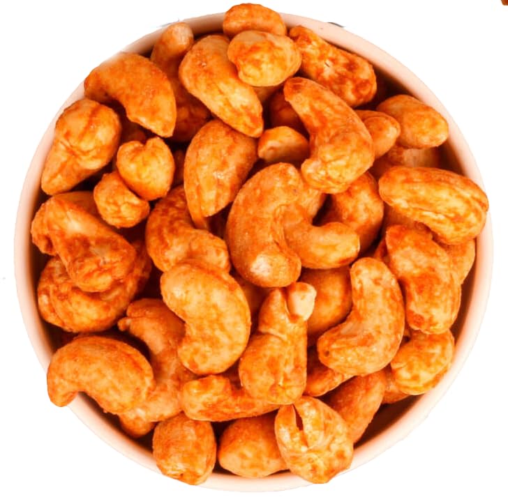 Supreme quality whole dry roasted chilli salted cashew nut packed in zipper sealed pack straight from the factory outlet! The cashew kernels are processed locally at our own factories to ensure high quality & freshness. The processing units are set so as to keep high standards in delivering organic fresh and tasty nuts. The premium quality delivered has earned trust and confidence of cashew buyers worldwide. Our nuts are exclusively dry roasted with heated air and never fried in oil. Dry roasting is healthier and creates better tasting nuts that stay fresher longer when compared to their deep-fat fried counterparts. The process of dry roasting releases the naturally occurring oils in nuts and seeds bringing out and enhancing their pure flavour.