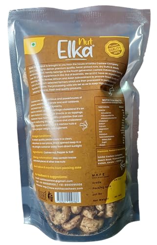 Supreme quality whole dry roasted pepper salted cashew nut packed in zipper sealed pack straight from the factory outlet! The cashew kernels are processed locally at our own factories to ensure high quality & freshness. The processing units are set so as to keep high standards in delivering organic fresh and tasty nuts. The premium quality delivered has earned trust and confidence of cashew buyers worldwide. Our nuts are exclusively dry roasted with heated air and never fried in oil. Dry roasting is healthier and creates better tasting nuts that stay fresher longer when compared to their deep-fat fried counterparts. The process of dry roasting releases the naturally occurring oils in nuts and seeds bringing out and enhancing their pure flavour.