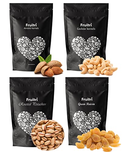 Fruitri Fresh and Premium Nuts Dry Fruits Combo Pack Almond Cashew Raisin Pistachios (Combo1 100g x 4)