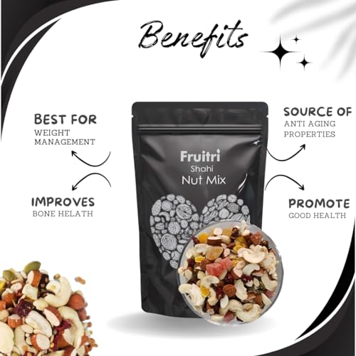 EXQUISITE FLAVORS: Fruitri Premium Shahi Nut Mix 100g Trial Mix Dryfruits Nuts and seeds SuperMix (Almonds Cashew White saunf Dhaniya Dal Watermelon seeds Pumpkin Seeds Mix Fruits Khajoor Supari).