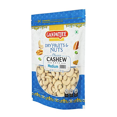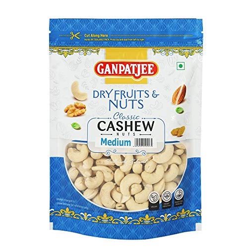 About GanpatjeeGanpatjee believes in superior quality products with the best quality ingredients packed with due care and hygiene.Whole Cashew Medium 250 gmCashews have a great number of antioxidants vitamins and minerals and bring down the bad cholesterol blood levels. Perfectly picked shelled and packaged for your salty savoury satisfaction each batch provides an incredible range of health benefits. Snack to your daily routine as our cashew nuts (Kaju) fills you with powerful energy and immune-boosting antioxidants and vitamins. Excellent sourcefor healthy diet. Suitable for vegetarian vegan raw diets and good for weight control and many recipes.Product Specifications:Product:Whole Cashew MediumQuantity: 250 GramIngredients: CashewsProduct FeaturesThis masala chai is an instant immunity booster for your healthVegetarian Product! No Artificial colours and No additivesPackage Includes:1* Whole Cashew Medium250 Gram