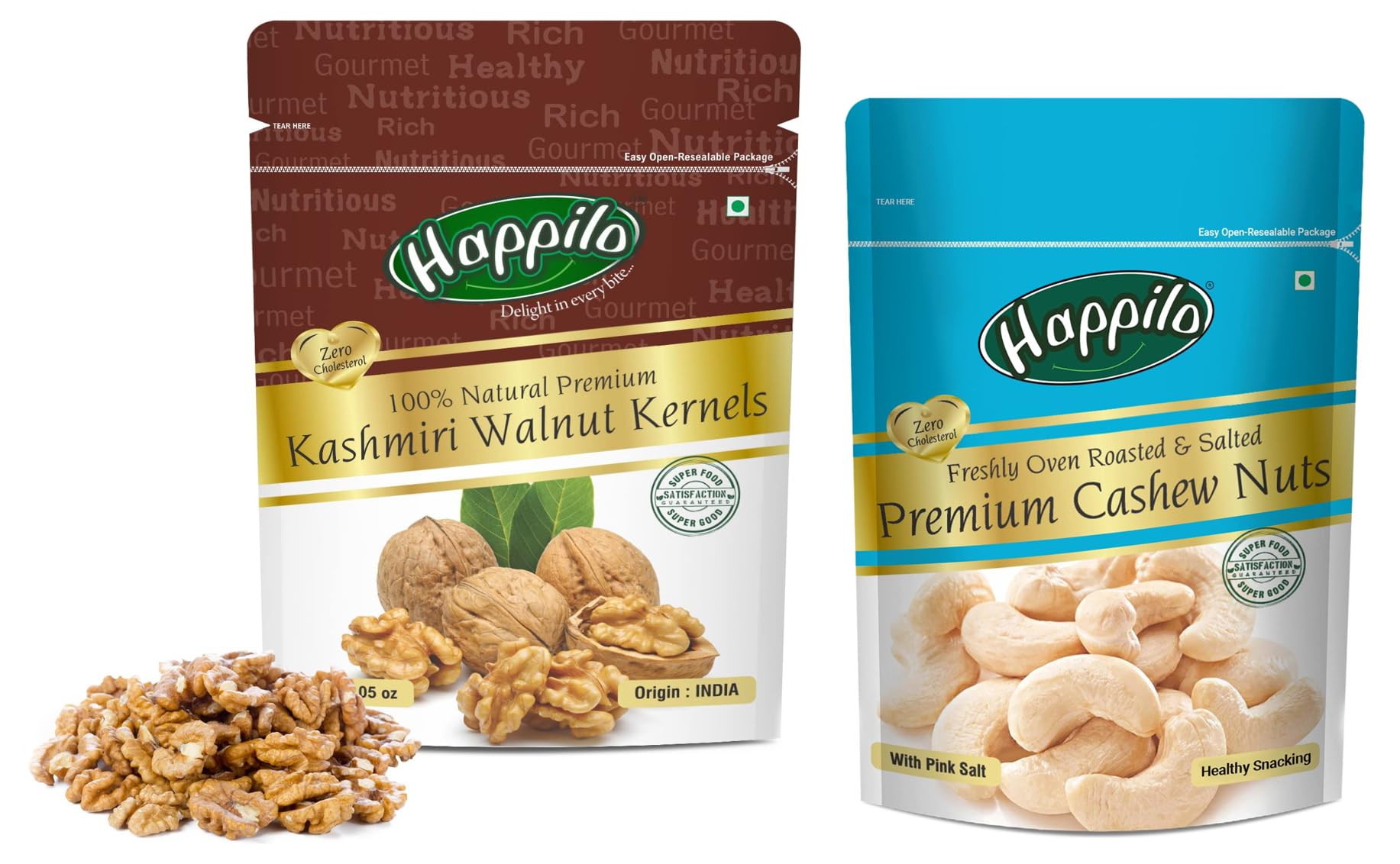 Happilo Premium 100% Natural Kashmiri Walnut Kernels 200gHappilo has travelled the world to get the finest gourmet dry fruits dried fruits nuts berries and dates. Indulge into the gourmet and grocery world of Happily with awesome natural nuts and dry fruits along with the unique dry fruit mixes fusions and flavoured dry fruits healthy seeds and dried berries specially crafted for your taste and health.Happilo Premium Roasted and Salted Cashews 200 g | Freshly Oven Roasted | Premium Kaju nuts | Nutritious Crunchy & Delicious | Gluten Free | Plant-Based ProteinHappilo Has Travelled The World To Get The Finest Gourmet Dry Fruits Perfect For A Healthy Lifestyle.Time To Be Happy Lovely & Healthy.High Protein Dietary Fiber No Gluten No Gmo Zero Transfat Zero Cholesterol 100% Real Nuts- Good For An Active Lifestyle Lowers Harmful Cholesterol Levels Rich Source Of Omega-3 Anti Oxidants & Vitamins Calcium Iron & Magnesium. Shelf Life : 12 Months