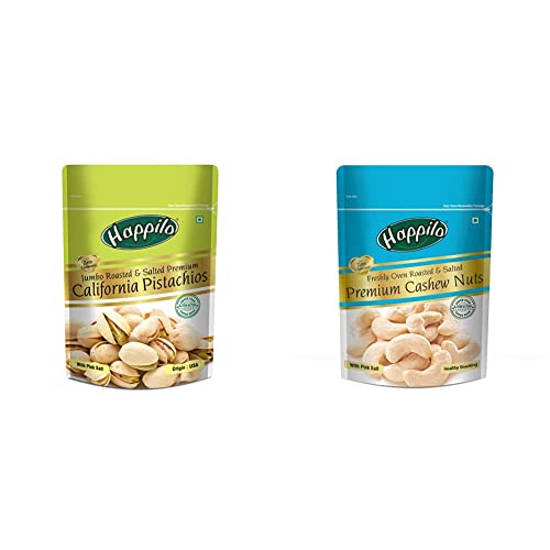 Happilo Premium Californian Roasted and Salted Pistachios, 200g (Pack of 1) and Happilo Premium Toasted and Salted Cashews, 200g