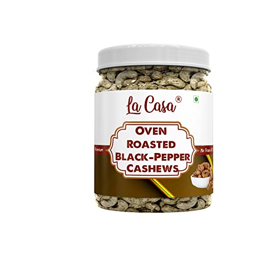 La Casa Oven Roasted Cashew Nuts Black Pepper Spicy Masala Cashews| Crispy Dry Roasted Cashews 100% Natura | Crunchy Smoky Kaju | 200g |
