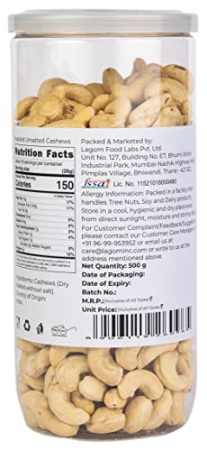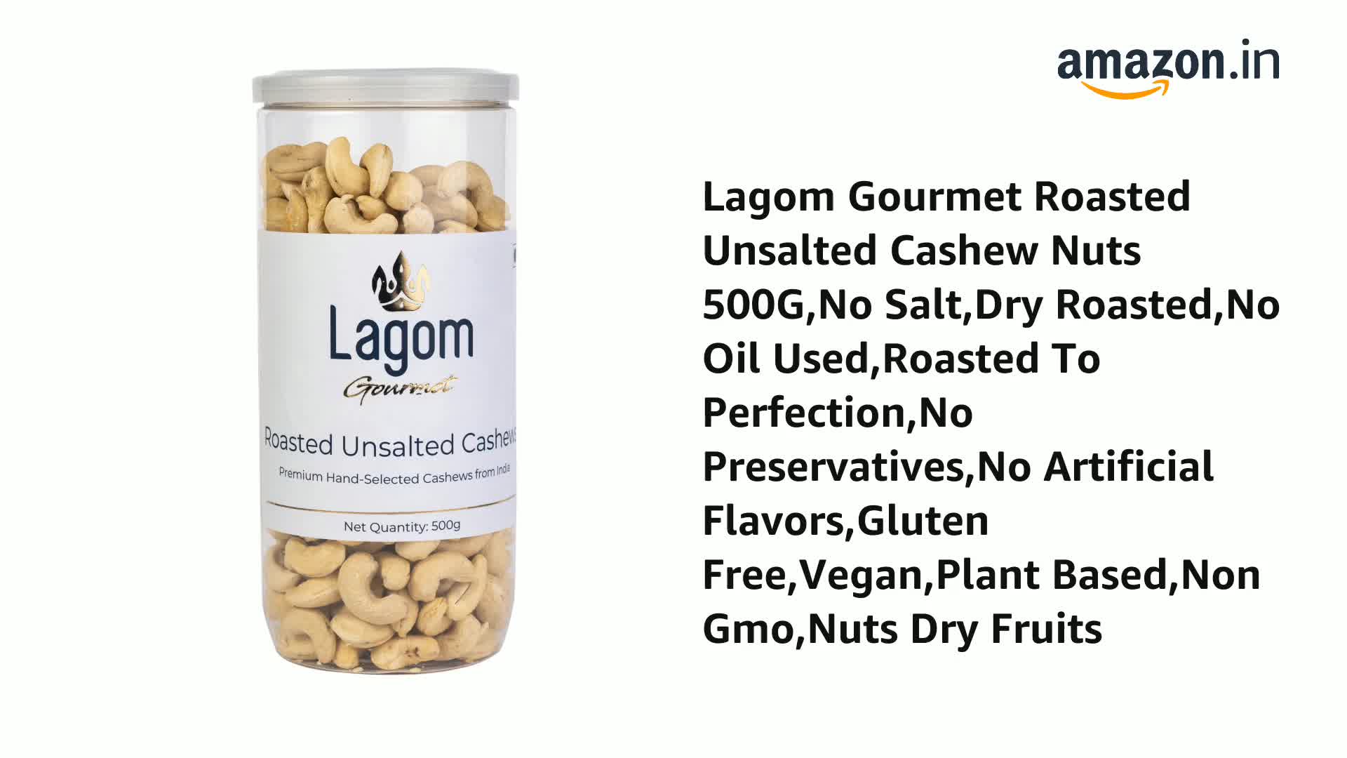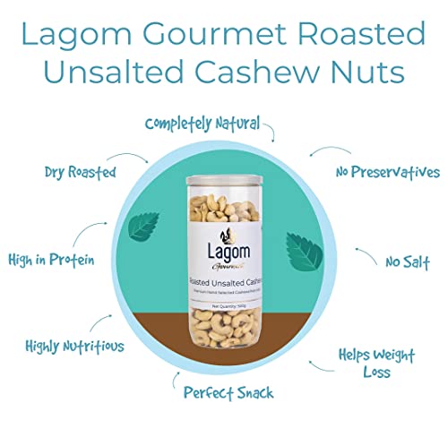 HomeGroceryNutsCashewsLagom Gourmet Roasted Unsalted Cashew Nuts 500g | No Salt | Dry Roasted | No Oil Used | Roasted To Perfection | No Preservatives | No Artificial Flavors | Gluten Free | Vegan | Plant Based | Non GMO | Nuts Dry Fruits