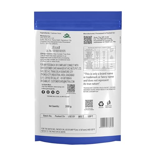 Nutraj Whole W320 Cashew Nuts 200g Pouch | Kaju | Dry Fruits and Nuts | Grocery Items