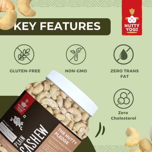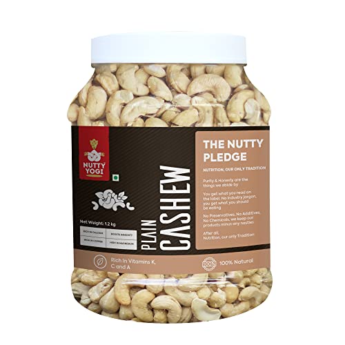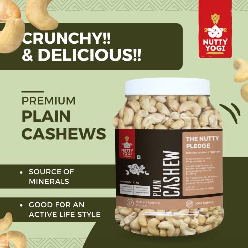 Nutty Yogi Cashew 1.2kgs Jar| Whole Crunchy Cashew | 100% Natural Premium Kaju Nuts Dry Fruit | Nutritious & Delicious | Gluten Free & Plant based Protein| Healthy Snacking|Low Sugar| Healthy Fats & Fiber