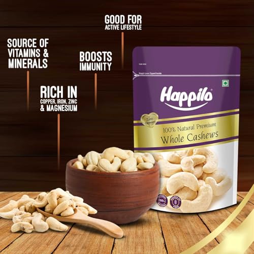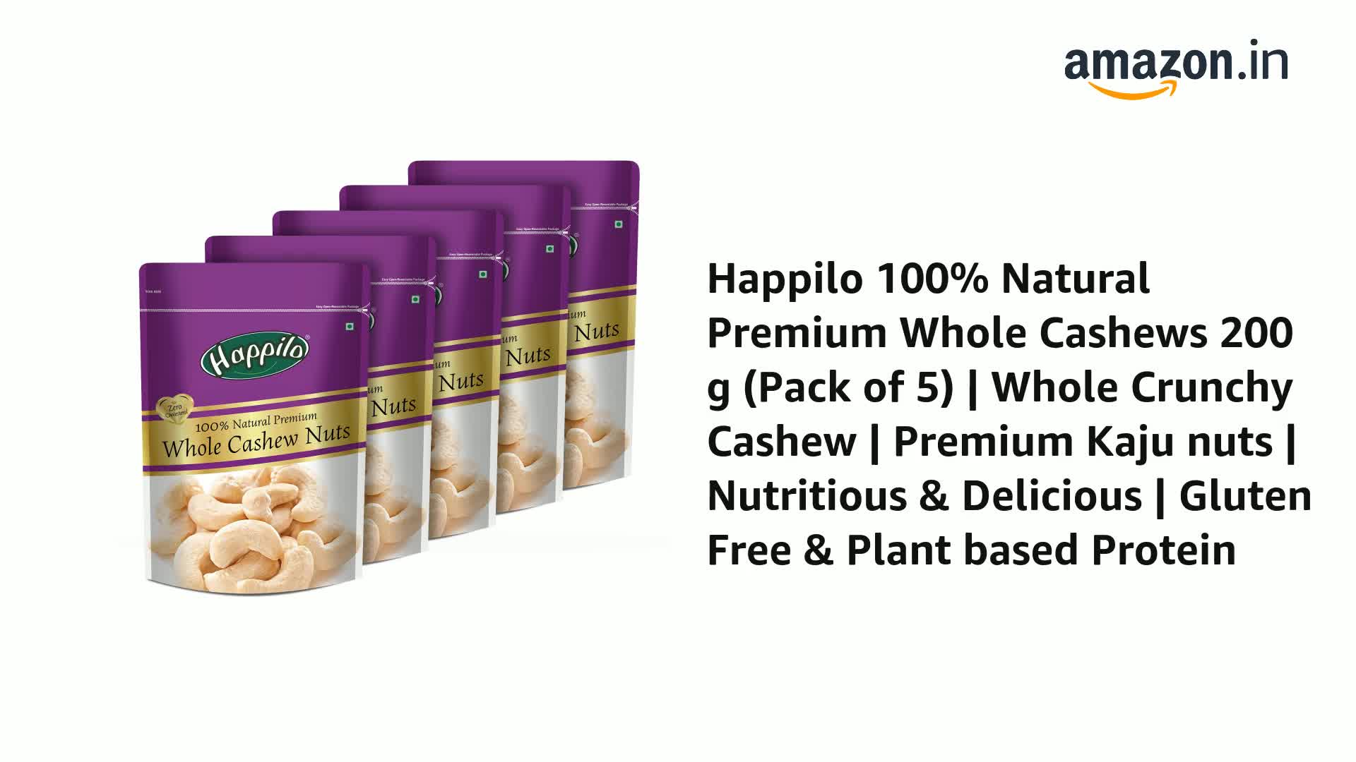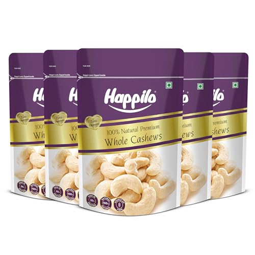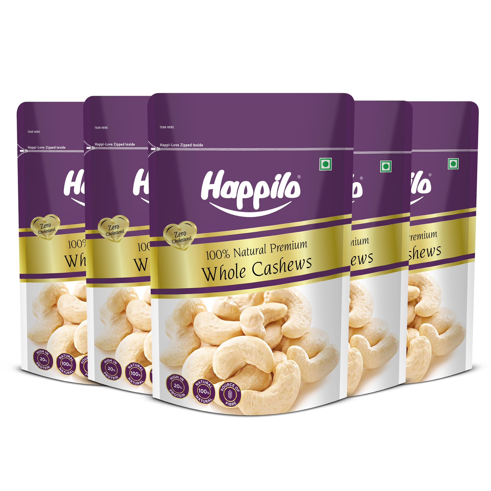 Happilo Premium Whole Cashew Nuts 200g (Pack of 5) | Dry Fruit Nutritious | Healthy Snacks - Rich in Nutrients, Protein, Fiber, Vitamins | Rich in Fibre | Healthy Snacks | 100% Natural Dry Fruit | Festive Snacking | Magnesium and Phosphorus | Rich in Prot