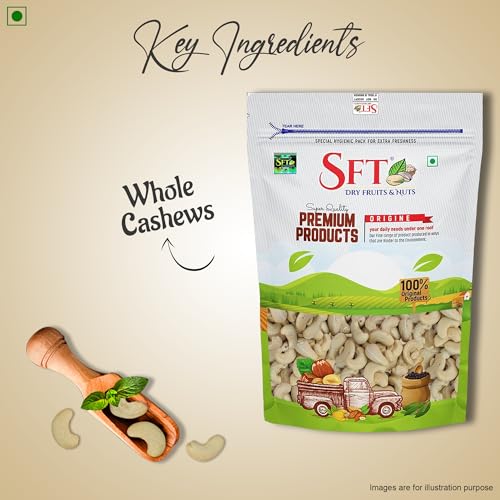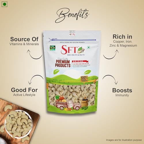 SFT believes that our reputation must be based on the quality of our products. We have travelled across the country to handpick the finest quality products at the best possible rates. SFT have been in the market for the past 22 years and we have tied up with all major offline retail majors. Our products are subjected to rigorous quality control procedures throughout the procurement and packaging processes. It is our constant endeavor to provide widest possible range to consumer and now have an ever expanding range of selections across dry fruits spices and nuts. We maintain great taste and guaranteed quality throughout the year and our products are sure to be your new favorites after your first purchase. SFT cashews are one of the lowest-fiber nuts they are packed with vitamins minerals and antioxidants. These include vitamins e k and b6 along with minerals like copper phosphorus zinc magnesium iron and selenium all of which are important for maintaining good bodily function.