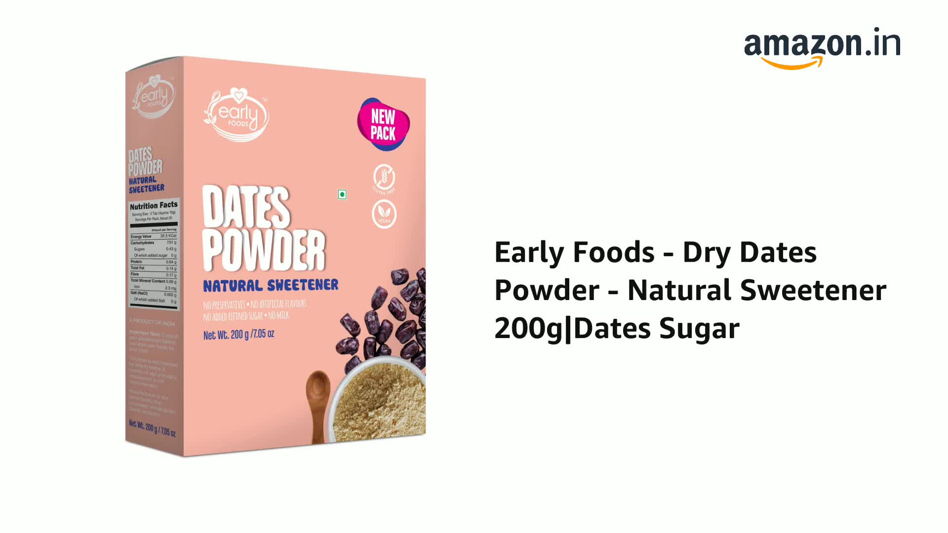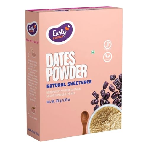 Early Foods dry dates powder is made from 100% premium brown dates. It has been dried and finely powdered so that you can use it as a natural replacement to Sugarr in desserts fruits salad milk shakes smoothies kheer etc. The dates powder being super rich in iron makes all the meals you use it in nutritious too.