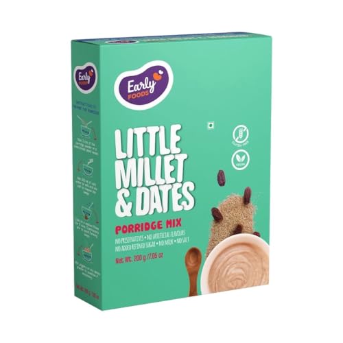 HomeGroceryNutsDatesEarly Foods - No Added Sugar No Salt Porridge - Little Millet Cereal with Dates Porridge Mix | No Preservatives | Kids Cereal | Sweetened with Dates | No Milk Powder 200g