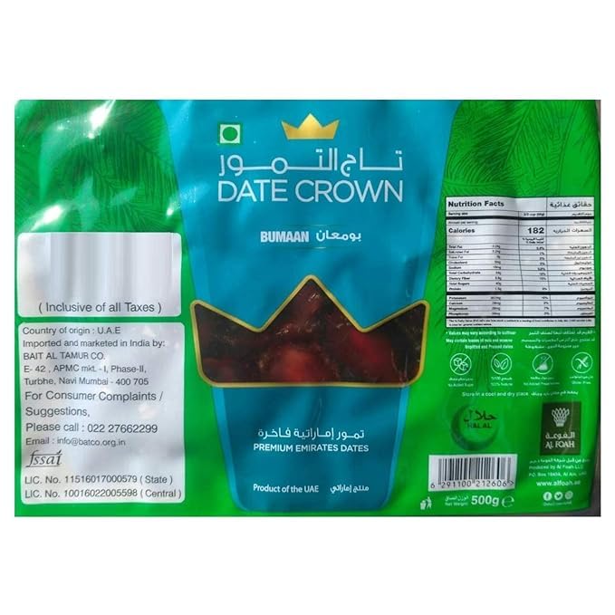 Fruitri Premium Bumaan Dates 500 grams : 100% nautral khajur Emirates Crown Bumaan Dates fresh Sweetness khajur (pack of 1)