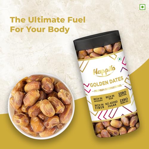 Indulge in the luscious taste of Happilo Golden Dates with the 400g jar a treasure trove of premium dates with a golden hue. Renowned for their succulent texture and natural sweetness these dates are perfect for both snacking and culinary adventures. The generously sized jar ensures you have an abundant supply of these exquisite Golden Dates allowing you to enjoy them on their own or incorporate them into a variety of recipes. Happilo's commitment to quality assurance guarantees that each Golden Date in the jar meets the highest standards providing you with a consistently delightful and premium snacking experience. Elevate your moments of indulgence with Happilo Golden Dates where every bite is a taste of luxury and natural sweetness.