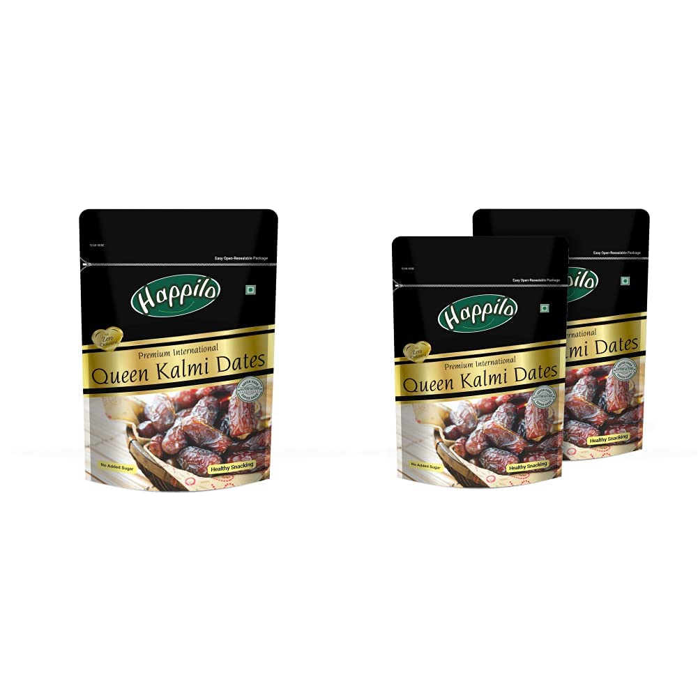 Happilo Premium International Queen Kalmi Dates 200gHappily has travelled the world to get the finest gourmet dry fruits dried fruits nuts berries and dates 100 percent natural and authentic. Indulge into the gourmet and grocery world of Happily with awesome natural nuts and dry fruits along with the unique dry fruit mixes fusions and flavoured dry fruits healthy seeds and dried berries specially crafted for your taste and health. Happily dry fruit gift boxes and festive dry fruits and nuts gift pack brings health happiness and love to gift to your colleagues friends and family. We bring you the taste and health together in single pack in the finest of packing packed in an art of the state facility certified by all majors like fssai iso. Every Happily pack is a perfect dry fruits gift for every festive occasion.Happilo Premium International Queen Kalmi Dates 200g (Pack of 2)Happilo has travelled the world to get the finest gourmet dry fruits dried fruits nuts berries and dates 100 percent natural and authentic. Indulge into the gourmet and grocery world of Happilo with awesome natural nuts and dry fruits along with the unique dry fruit mixes fusions and flavoured dry fruits healthy seeds and dried berries specially crafted for your taste and health. Happilo dry fruit gift boxes and festive dry fruits and nuts gift pack brings health happiness and love to gift to your colleagues friends and family. We bring you the taste and health together in single pack in the finest of packing packed in an art of the state facility certified by all majors like fssai iso etc. Every Happilo pack is a perfect dry fruits gift for every festive occasion. Happilo product range includes dates like kalmi dates medjoul dates Omani dates kimia dates and exotic nuts and berries like dried goji berries hazel nuts macadamia nuts pecan nut kernels pine nut kernels exotic brazil nuts (amazon nuts) roasted Californian almonds flavours like magic masala peri peri salted roasted jumbo flavours like green chilly cashews lightly salted cashews paneer tikka cashews seeds like flax seeds sunflower seeds quinoa seeds chia seeds pumpkin seeds roasted lightly salted premium international products like dried whole blueberry cranberry super mix super mix berries heart healthy mix Happilo healthy nutmix party mix - lightly salted nuts and berries omega seed mix (roasted sunflower pumpkin and flax seeds) Happilo seeds and berries trial mix Happilo cranberries lovers mix jumbo mamro almonds 100 percent natural Californian almonds Afghani anjeer Turkish apricots blueberries dried and sweet whole cranberries roasted salted pistachios Californian pitted dried prunes raisins like Indian kishmish/dry grapes Afghani green raisins and Afghani black raisins walnuts dry fruits without shell and California in shell walnut kernels fancy dry fruit gift box dry fruits gift box with fruits dry fruits combo pack offers assorted dry fruits mixed dry fruits dry fruits box dry fruits container dry fruits mix dry fruits pantry dry fruits gift pack dry fruits mixed offer combo pack mixed nuts and dry fruits and all ranges of dry fruits and nuts and berries. Natural tasty and healthy Happilo kalmi dates also known as khajoor are one of worlds most delicious farm fresh dates. Kalmi dates have the hidden quality of boosting energy instantly! Hence they are not just apt during festive season but are also a must-have snack for the entire year. It is superfood for super energy levels. Our products are packed under highest level of hygiene retaining all the goodness of nature.
